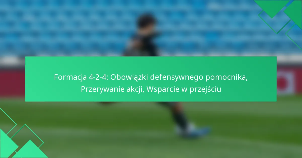 Formacja 4-2-4 to taktyczny układ w piłce nożnej, który równoważy ofensywną siłę z defensywną stabilnością. W ramach tej struktury defensywny pomocnik jest niezbędny do zakłócania akcji przeciwnika oraz ułatwiania płynnych przejść z obrony do ataku. Do jego obowiązków należy przechwytywanie podań, wykonywanie wślizgów oraz strategiczne ustawianie się, aby utrzymać kontrolę nad grą.